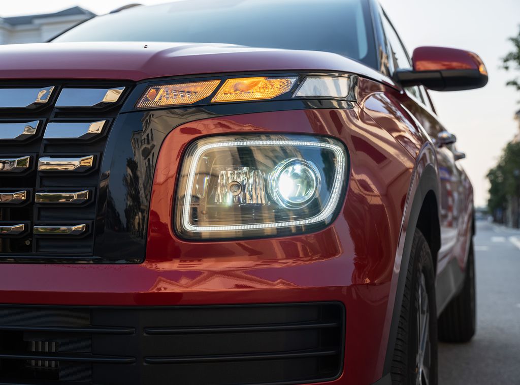 Hyundai Venue sở hữu thiết kế ấn tượng với điểm nhấn phía trước là lưới tản nhiệt kích thước lớn tạo hình thác nước Cascading Grill theo phong cách Parametric Dynamic mang dấu ấn của mẫu xe đàn anh Palisade. Cụm đèn chiếu sáng dạng Projector LED được thiết kế tách cụm mới, đặc trưng bởi đường nét sắc sảo và tinh tế. Đèn định vị ban ngày DRL (Daytime Running Light) của xe được thiết kế bao quanh cụm đèn pha tạo nên nét độc đáo cho xe. Cản trước được sơn màu bạc, tạo nên vẻ hiện đại năng động.